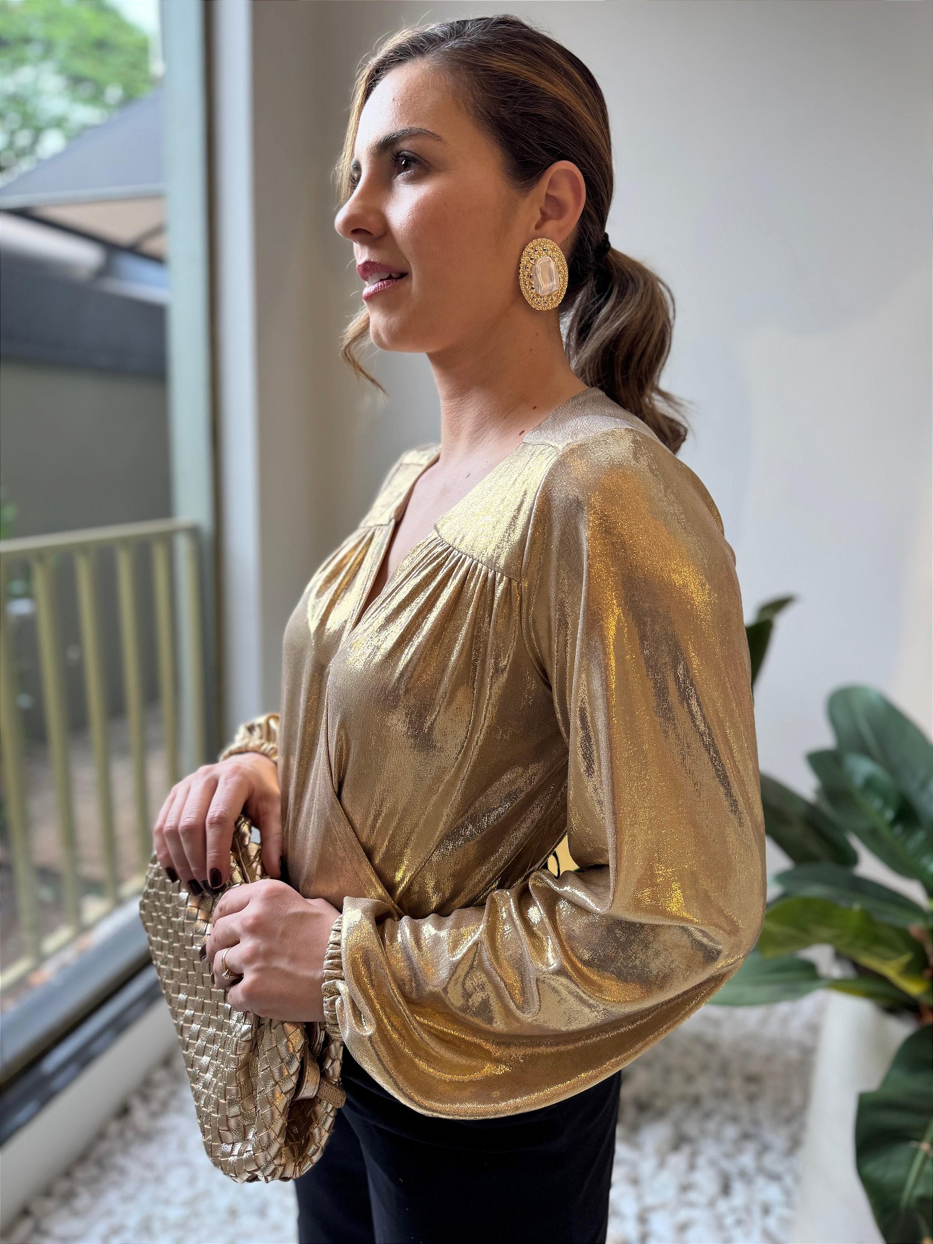 O brilho na medida certa para um visual elegante e poderoso. O Body Metalizado Mango Tango é confeccionado em tecido leve com acabamento metalizado, que reflete a luz de forma sutil e sofisticada. Com mangas longas e decote transpassado, o modelo valoriza a silhueta e traz um toque moderno e feminino. Seu caimento ajustado garante conforto e elegância, tornando-o ideal para composições que vão do casual chic à produção noturna. Uma peça versátil e marcante — perfeita para mulheres que gostam de unir estilo, brilho e sofisticação com o DNA da Mango Tango.
